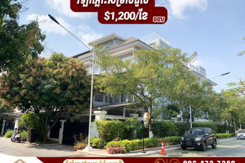 Twin Corner villa at Borey Peng Houth near Street Mong Rithy for Rent $1,200